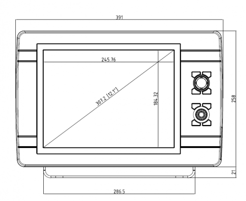 Dimensions with bracket mm: H: 269 - W: 391 - D: 150